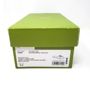 Tory Burch Double T Sport Slide Sandal Leather Bourbon Miele Gold 79985 Size 8.5