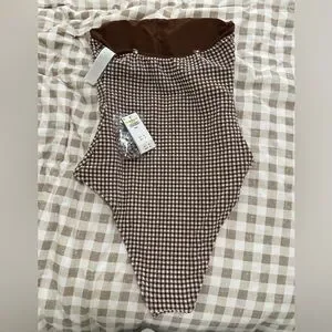 Brown gingham. Never worn or tried on. NWT.