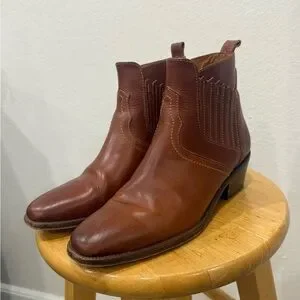 Vanessa Bruno Santiag Cognac Leather Western Ankle Boots – EU 37, US 6.5/7