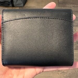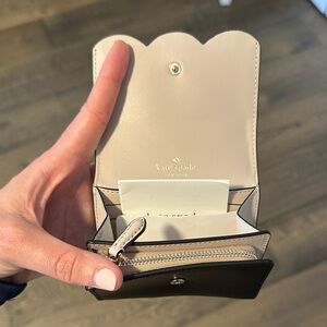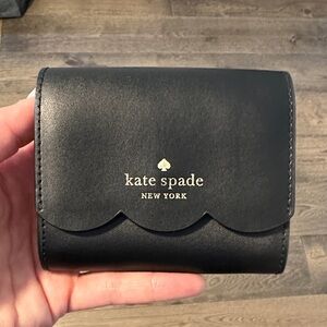 Chic black wallet by Kate Spade. Features gold logo accent.