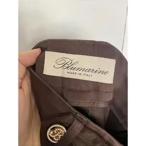 BLUMARINE Brown Cotton Dress Pants Trousers Rhinestone Logo IT-40