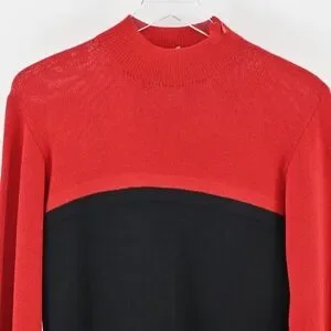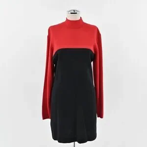 Vtg 80s ST JOHN Dress Size 8 Santana Knit Colorblock Red Black Mock Neck Shift