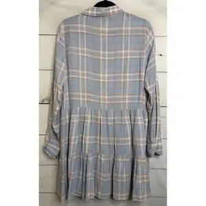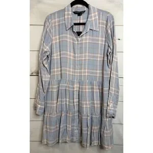 Veronica Beard Jeans Jemila Shirtdress Vapor Multi Plaid Tiered Mini L Boho