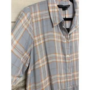 Keywords: boho, preppy, coastal, casual, designer, summer, spring, plaid, tiered, linen blend.