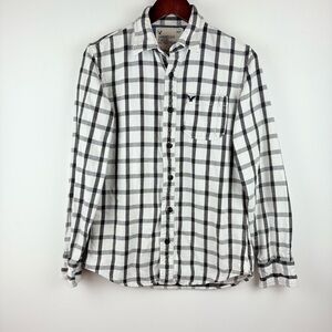 American Eagle Shirt Mens Small White Plaid Pocket Heavyweight Dad Button cotton