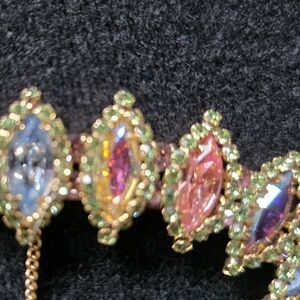 Vintage Multi -Color Juliana Rhinestone Bracelet With Safety Chain. (Gold Tone)