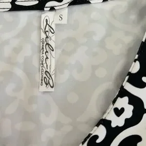 Lulu B UPF 50 Cooling Three Quarter Sleeve Top Black White Print NWT Size Small