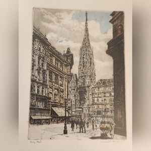Vtg Original Etching Signed Leopold Hofmann St Stephen's Cathedral Vienna