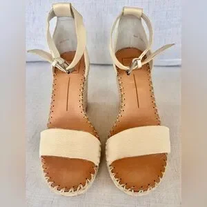 Dolce Vita Cream Leather Espadrille Wedge Sandals Ankle Strap Size 8