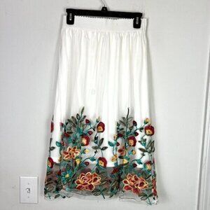 Magic Womens Medium Embroidered Floral Semi Transparent A line Midi Skirt White