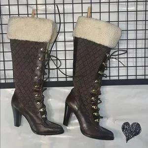 Stylish brown quilted boots with a cozy cream cuff.