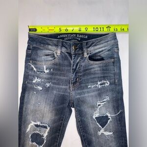 American Eagle dark wash distressed hi rise skinny jegging jeans!