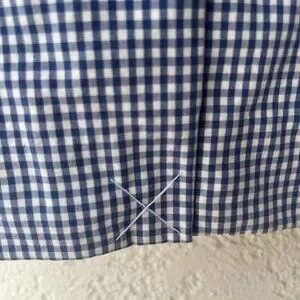 Apologies for the strange pattern lines in some of the photos. They are optical illusions. Please look at the close-ups to see the actual gingham print and quality of the fabric.