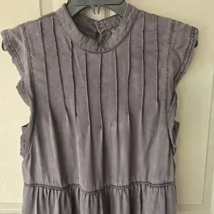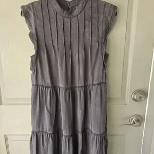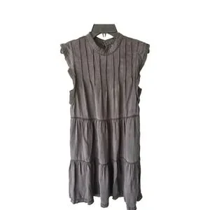 Chic and versatile gray sleeveless dress with a tiered design. Perfect for any occasion.