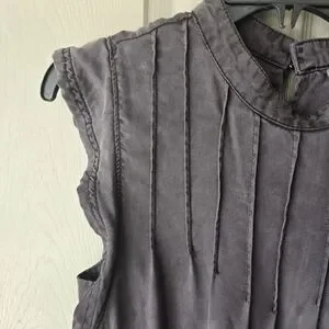 Anthropologie Jenee Tiered Tunic Dress Sz S Washed Black Short Casual Pockets