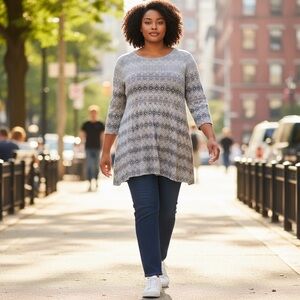 Ruby Rd.Womens plus size 1X Gray Patterned Scoop-Neck Tunic