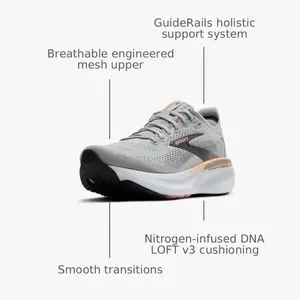 Experience comfort and style with Brooks women's running shoes. Featuring a sleek gray design, these shoes are perfect for your active lifestyle.
