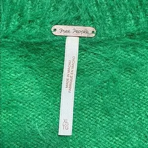 Free People Harrison Bunny crew fuzzy teddy sweater oversized green XL