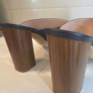 Kate Spade New York Denim Block Heel Mule Sandals Two Strap Wood Heel Size 9