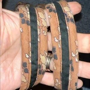 Style: Quilted fabric with a vintage floral or geometric pattern