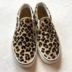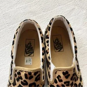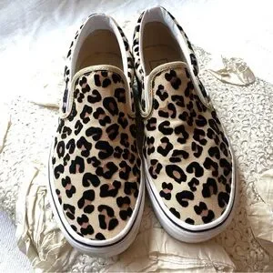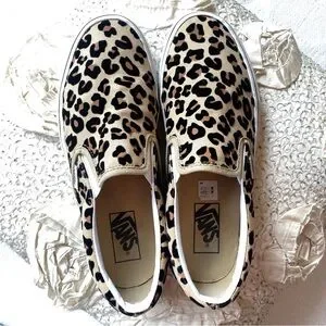 Vans Leopard Print Slip On Black Tan Casual Classic Slip On Shoes Size 9