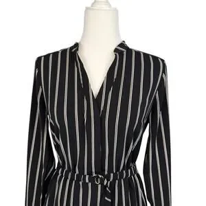 Black Striped Shirt Dress Knee Length Size 4 Young Professional Office Career