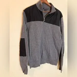 This Michael Kors pull over is in great shape. It has a sport zipper at the neck and has black patches at the elbow and shoulders. It is a men’s size large and measures approximately 28 inches long.