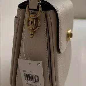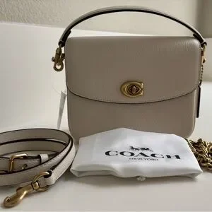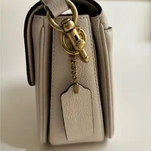 Chic Coach Chalk Cassie Crossbody bag is perfect for travel or hold your every day essentials. Features elegant brass chain and two coordinating chalk leather straps with brass hardware. Instantly elevate your outfits with this cutie little bag.