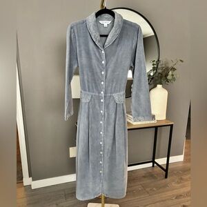 April Cornell Grey/ Blue Corduroy Button-Front Maxi Dress |