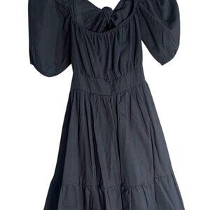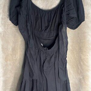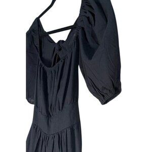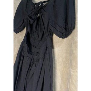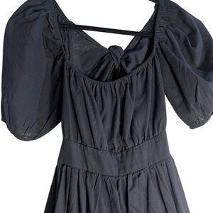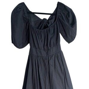 SHEIN Midi Black Backless Cut Out Puff Sleeve Self Tie Smocked Waist Scoop Neck