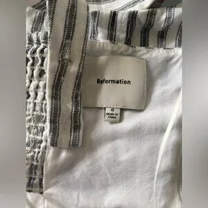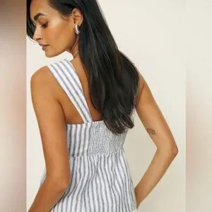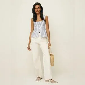Reformation Evie Linen Top in Antibes Stripe Blue White Stripes | US 0 UK 4