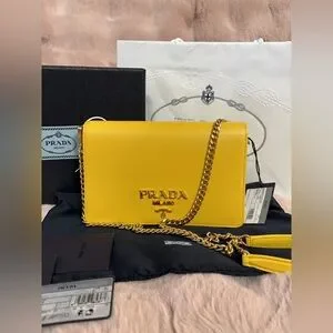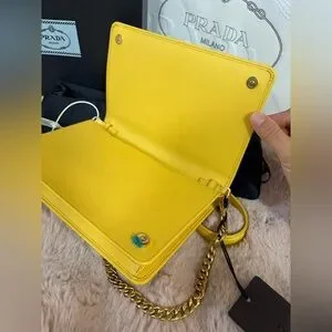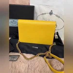 Prada miniborse Saffiano leather Yellow Crossbody Bag with Chain Strap
