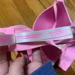 Light pink lace push-up bra from PINK Victoria's Secret. Molded cups with subtle leopard lace overlay. Adjustable straps and hook-and-eye back. Smooth underwire support. Feminine everyday style.