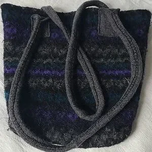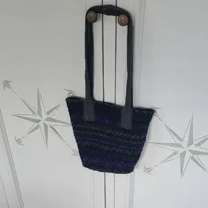 Stylish Vintage Handmade Purple and Black Women's Wool Tote Bag