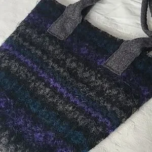 Elevate your style with this chic purple and black tote bag. Perfect for any occasion, this bag combines fashion and functionality. Made of soft wool.