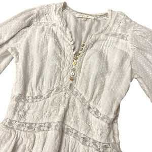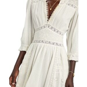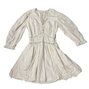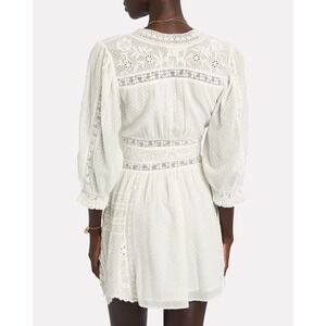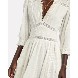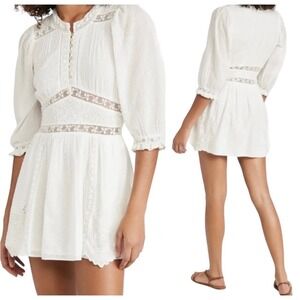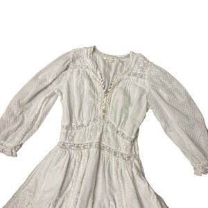 Love Shack Fancy Leno Mini Dress Long Sleeve V Neck Womens White Size 2