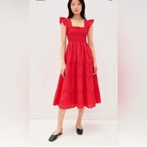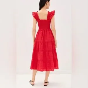 Hill House The Ellie Nap Dress Medium Color: Red Daisy Check Eyelet NWT