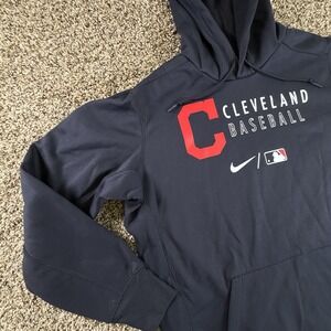 Cleveland Guardians Hoodie Mens Large Blue Nike Dri Fit Sweatshirt Logo MLB L