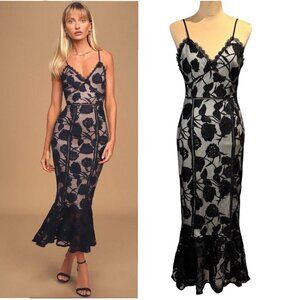 Lulus Floral Lace Midi Dress Sz S Black Gothic Romantic Event Formal Dark Fairy