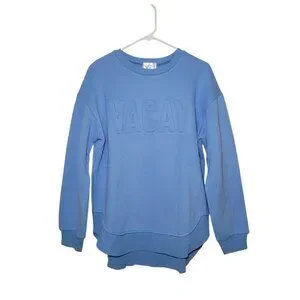 Embossed Crewneck Sweatshirt Womens Blue Salty Wave Small Beachy Streetwear Loungewear NWOT
