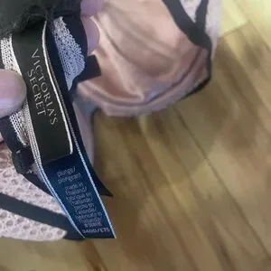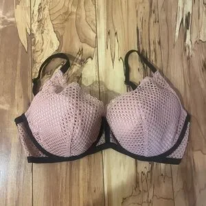 Victoria's Secret Pink Sparkle Lace plunge Push-Up Bra with Black Trim 34DD