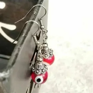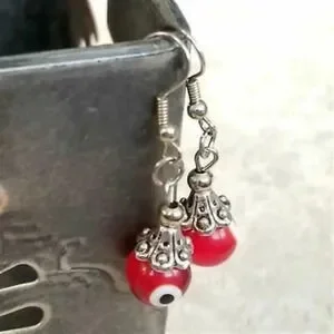 Hand Crafted Evil Eye Red Lampwork Glass Beads Protective Talisman Drop Earrings