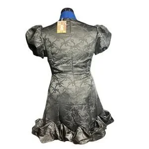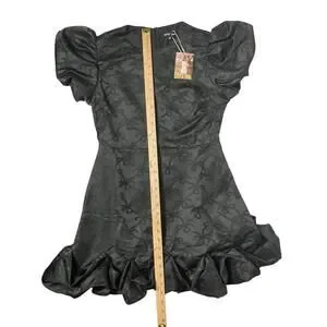 Sister Jane Black Jacquard Puff Sleeve Mini Dress M