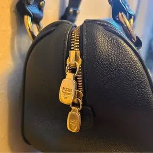 MCM Mini Boston Black Satchel with Gold Accents