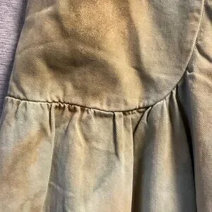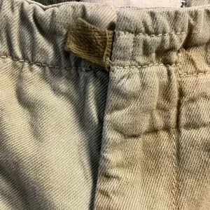 Casual olive cargo pants with adjustable cuffs. Features spacious pockets.