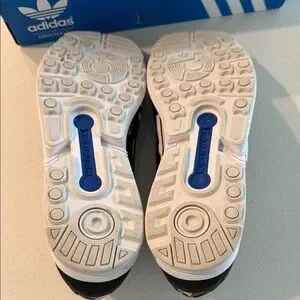 Adidas Torsion men’s sneakers with bold multicolor graphic print. Black upper with vibrant accents. Cushioned white midsole for comfort. Lace-up style with signature three stripes. Modern streetwear look. Minimal wear shown in photos and clean.