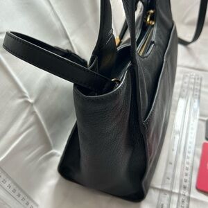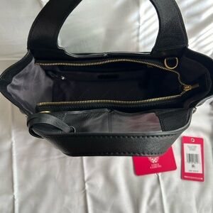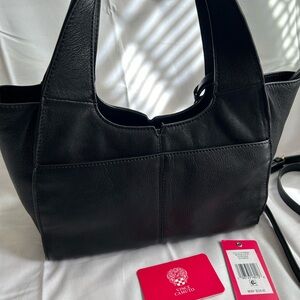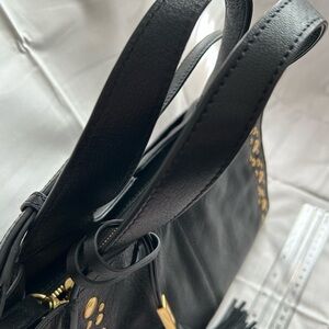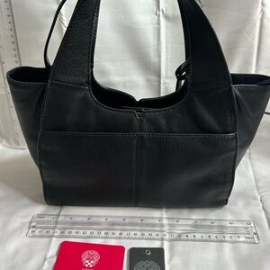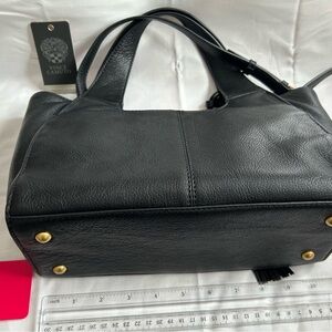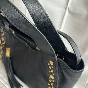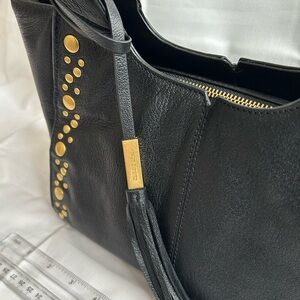 Vince Camuto Black Pebbled Leather Studded Shoulder Bag with Tassel