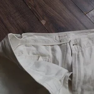 Wide leg Khaki ladies pants by BritishIndia Traveller,size nine.adjustable buttons,waist is 36 inches,inseam is 221/2 inches.In great shape,They are 100% linen,