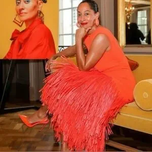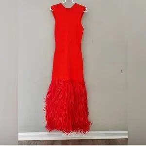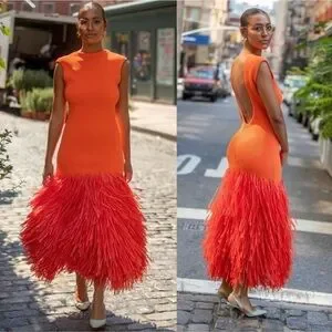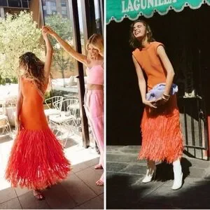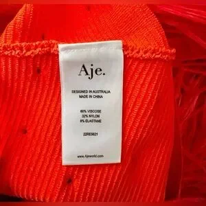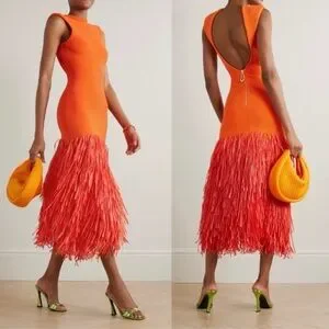 SUPER RARE Aje Raffia Trimmed Ribbed Stretch Knit Midi Dress Orange Size XXS.