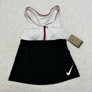 NWT Nike Tankini Swim Top Pink Black White With Zipper Women Sz S